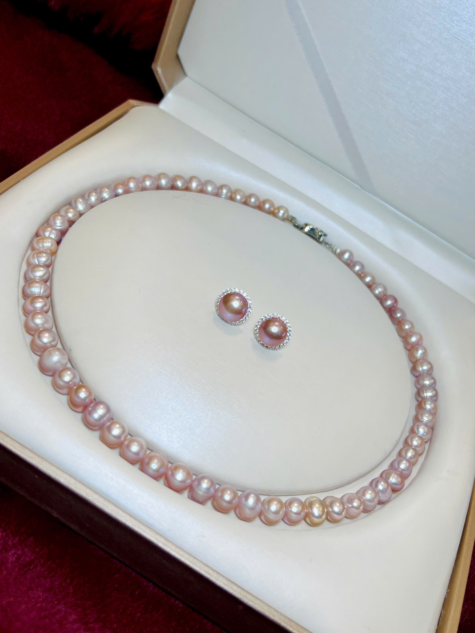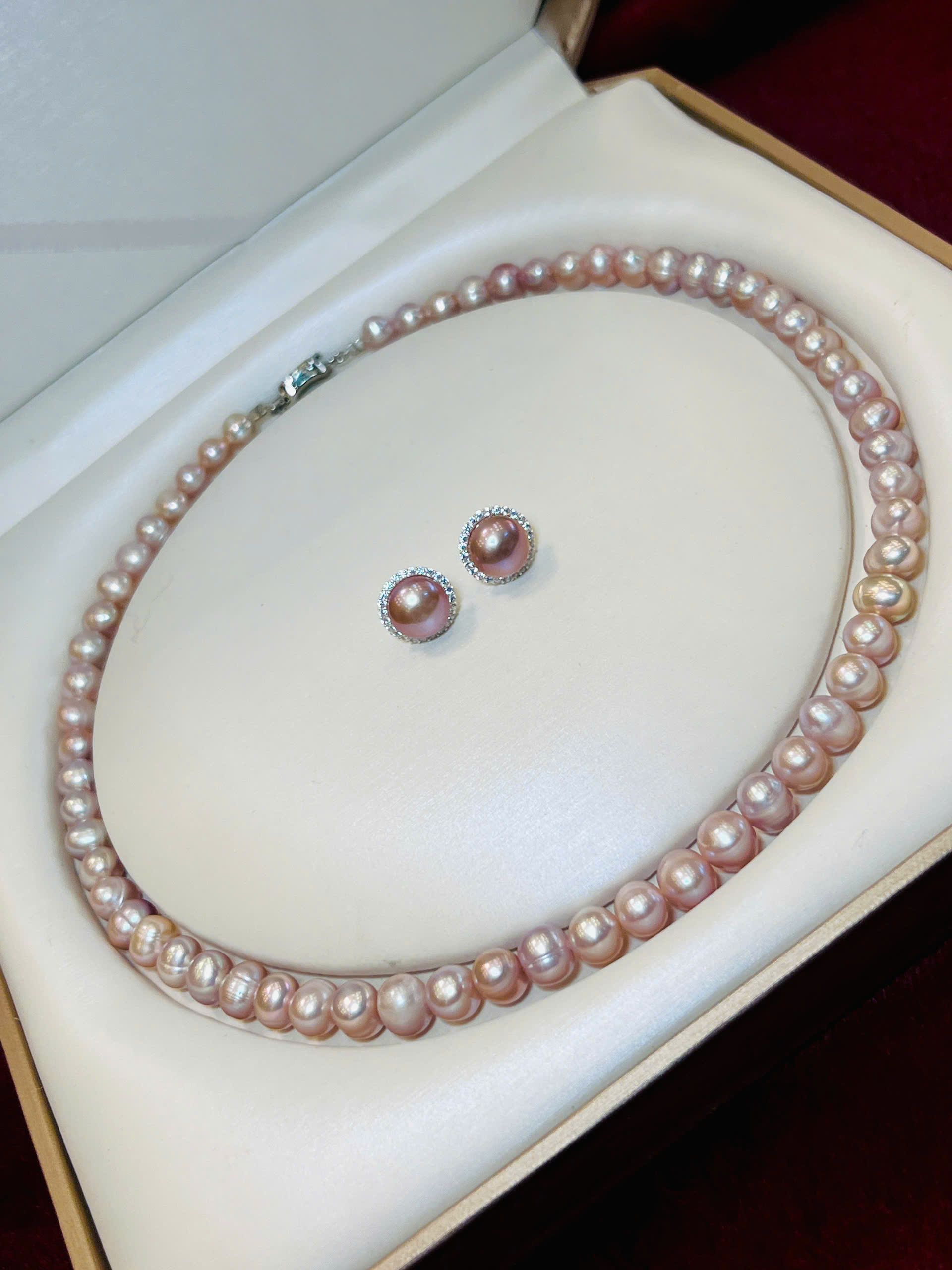 Bộ chuỗi ngọc trai hồng tím sang trọng