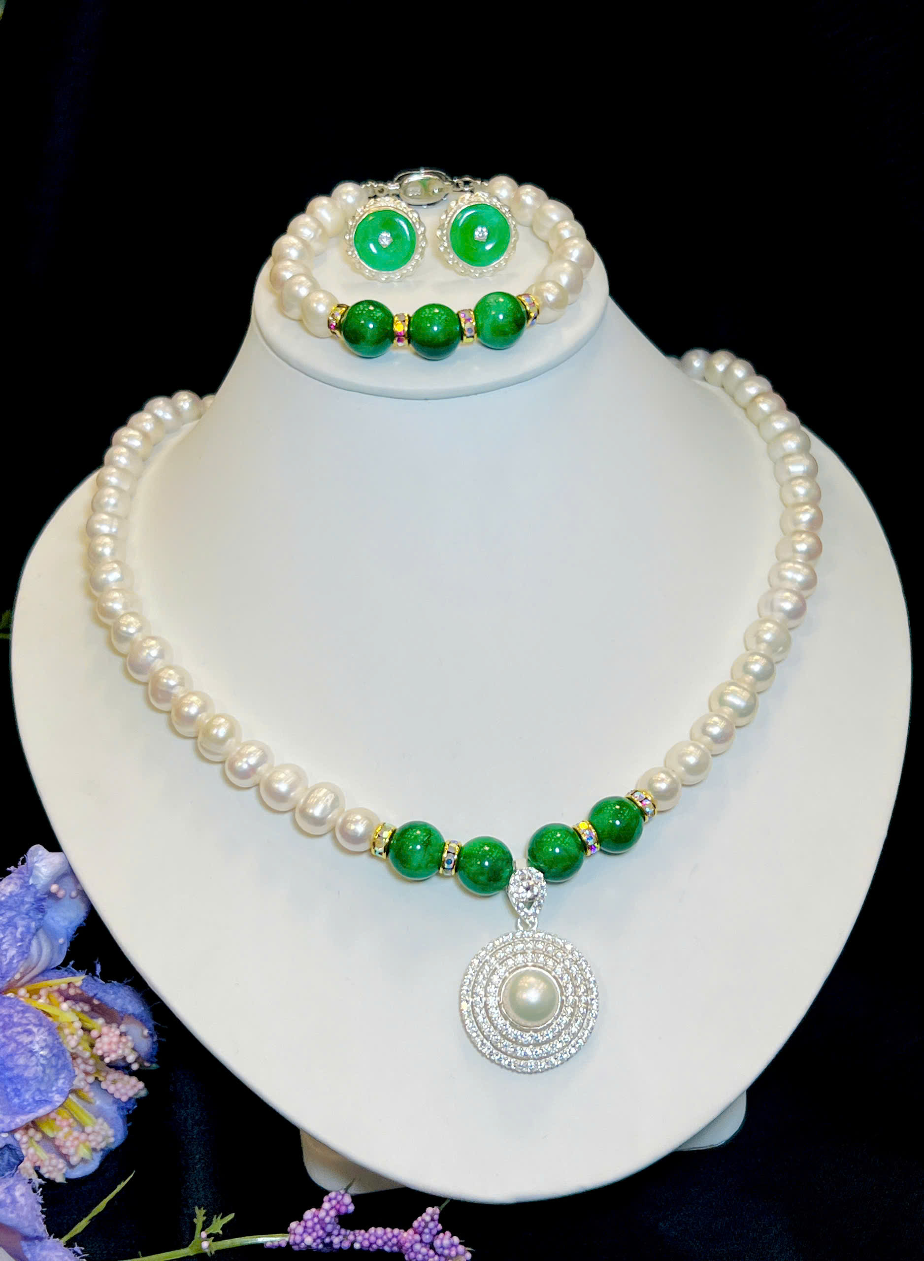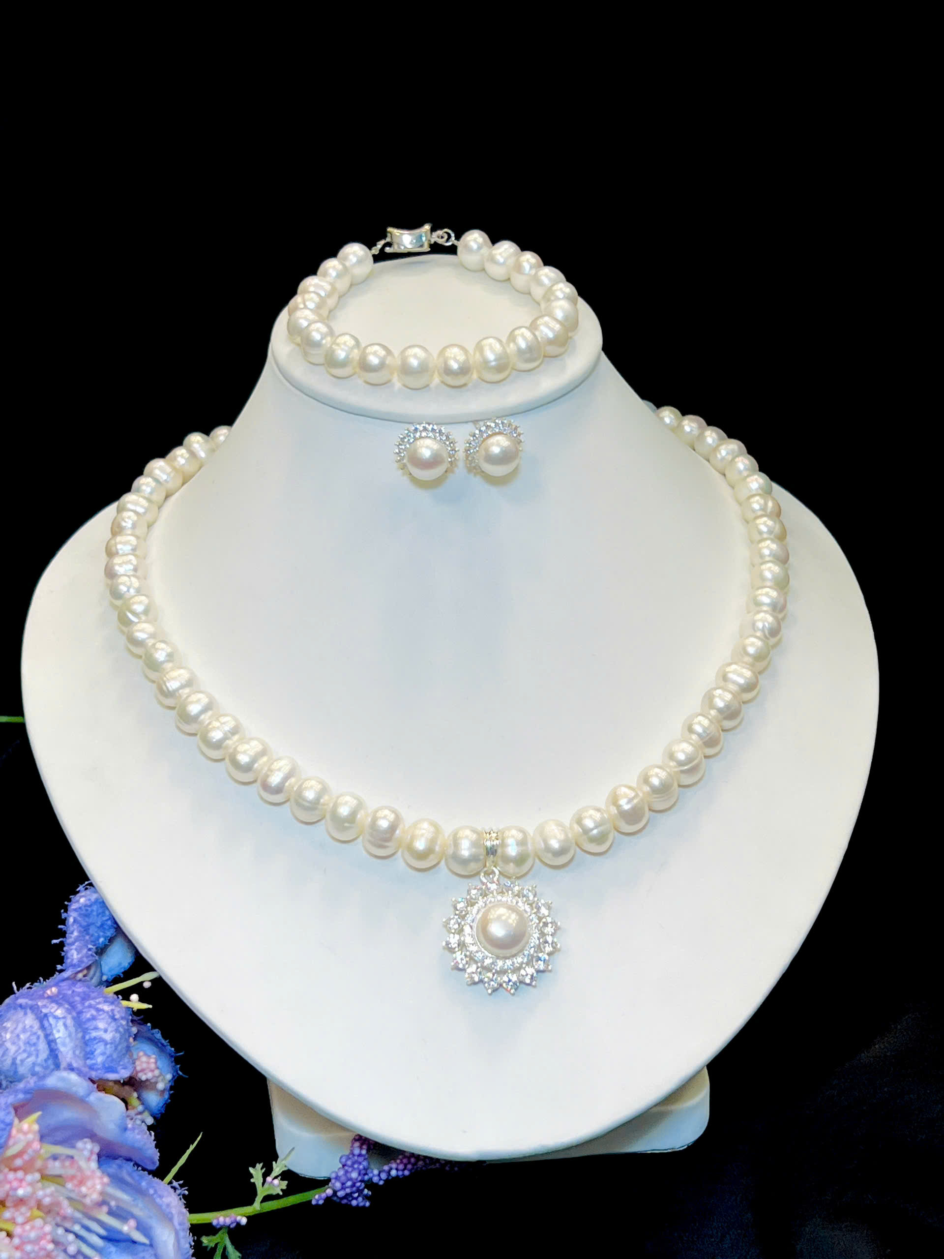 Bộ Chuỗi Ngọc Trai Sang Trọng. Trang Sức Chế Tác Bạc