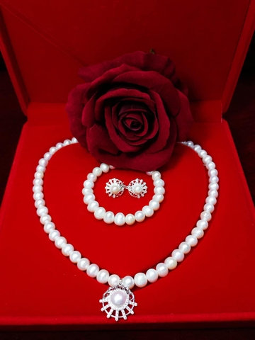BỘ TRANG SỨC NGỌC TRAI BẠC DUYÊN DÁNG