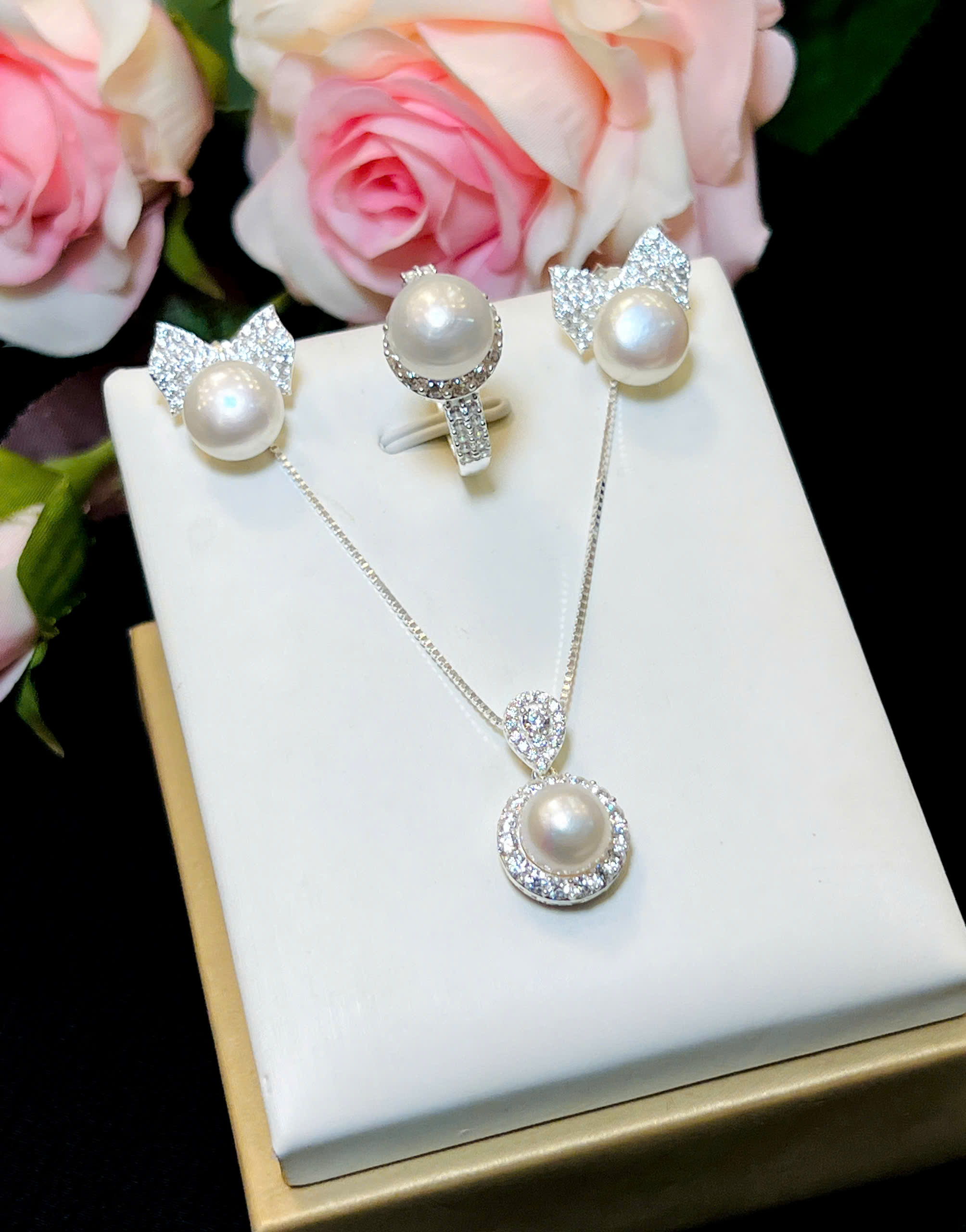Bộ Ngọc Trai Chế Tác Bạc . Quà Tặng Ý Nghĩa