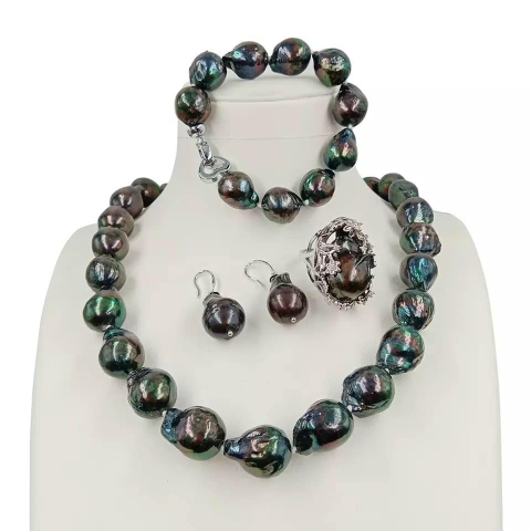 Bộ Ngọc Trai Xanh Đen Lông Công Quý Phái