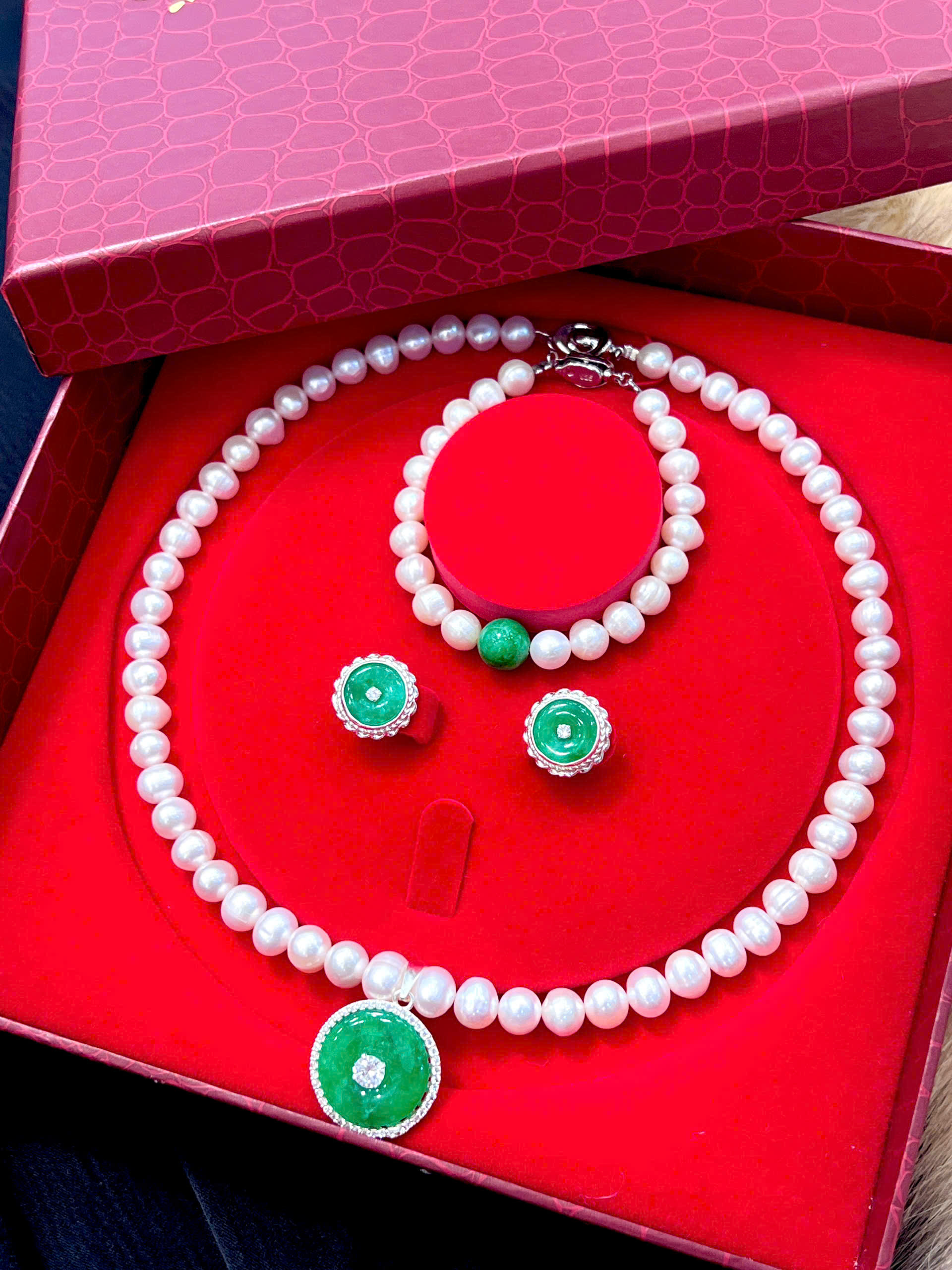 Bộ Ngọc Trai Trang Sức Bạc . Món Quà Tặng Yêu Thương