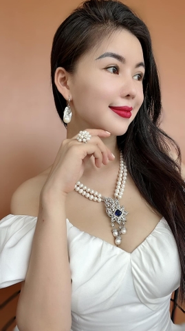 Chuỗi Cổ Ngọc Trai Trắng Phối Mặt Bạc Đính Ngọc Sang Trọng