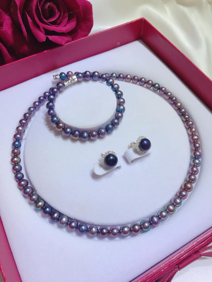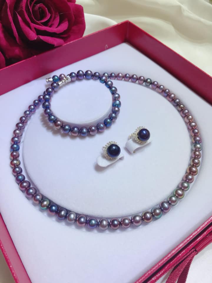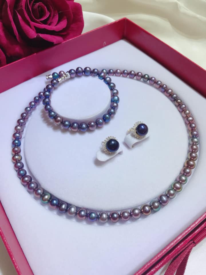 Bộ Ngọc Trai Xanh Đen Ánh Tím Quý Phái