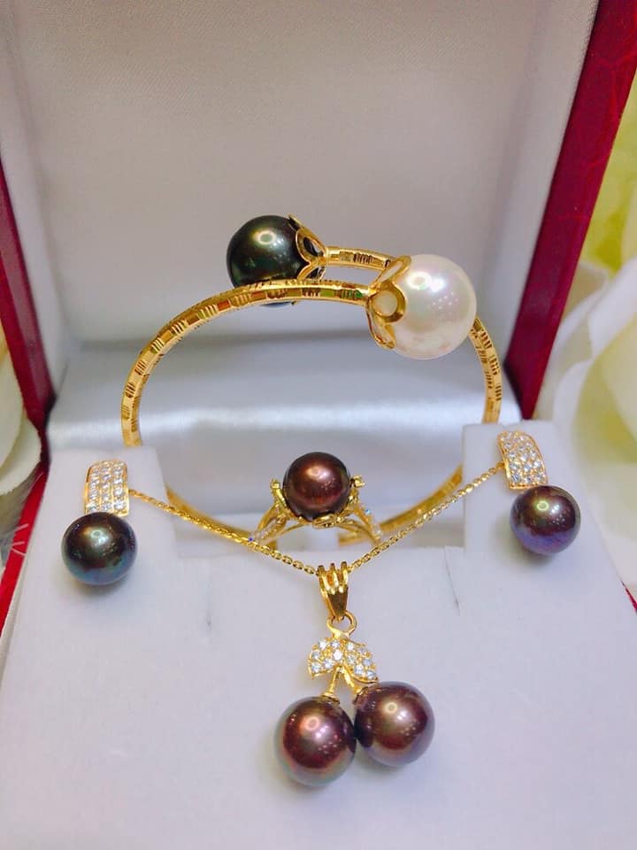 BỘ TRANG SỨC NGỌC TRAI VÀNG ĐÍNH NGỌC TRAI NƯỚC NGỌT CAO CẤP