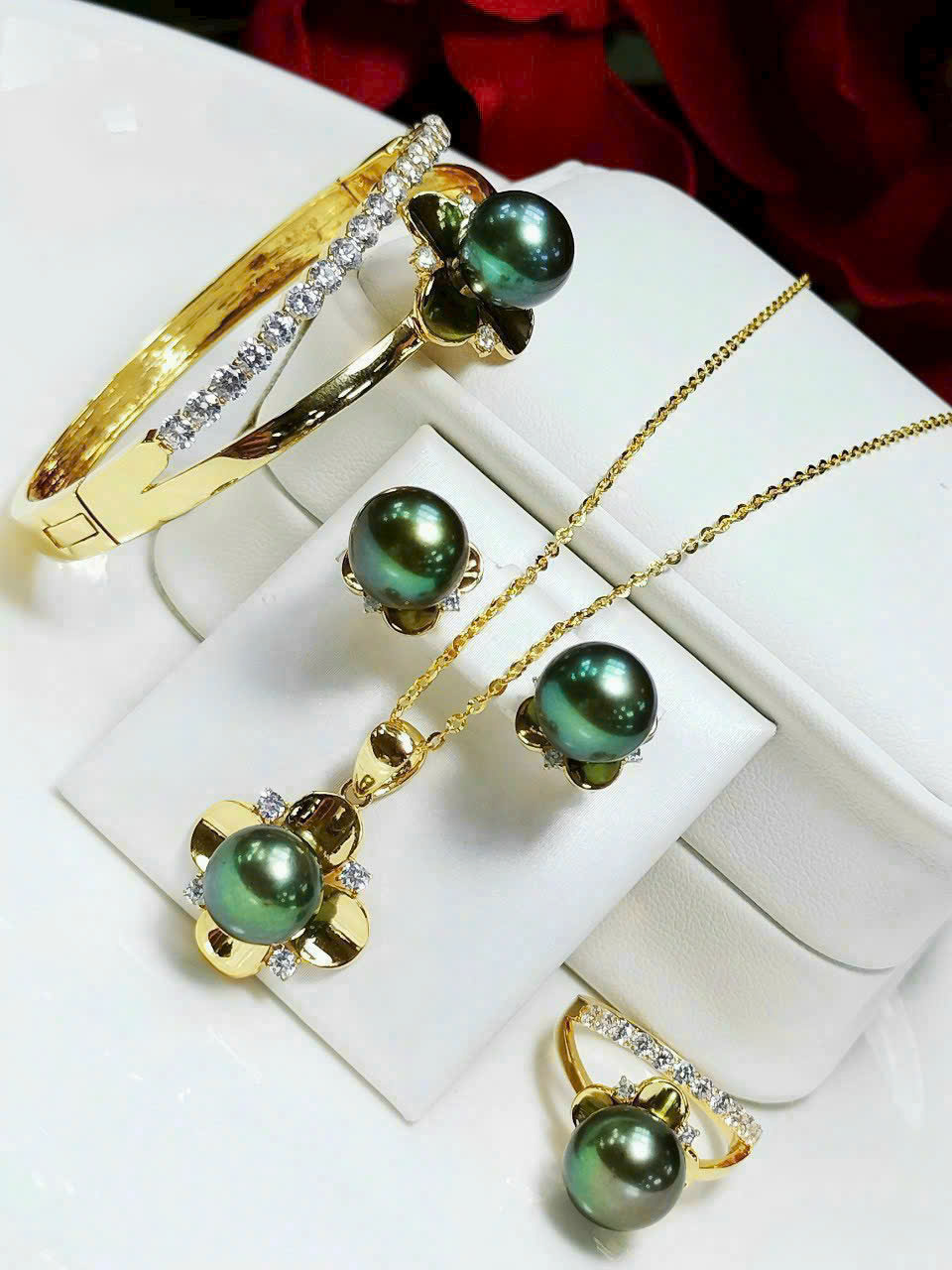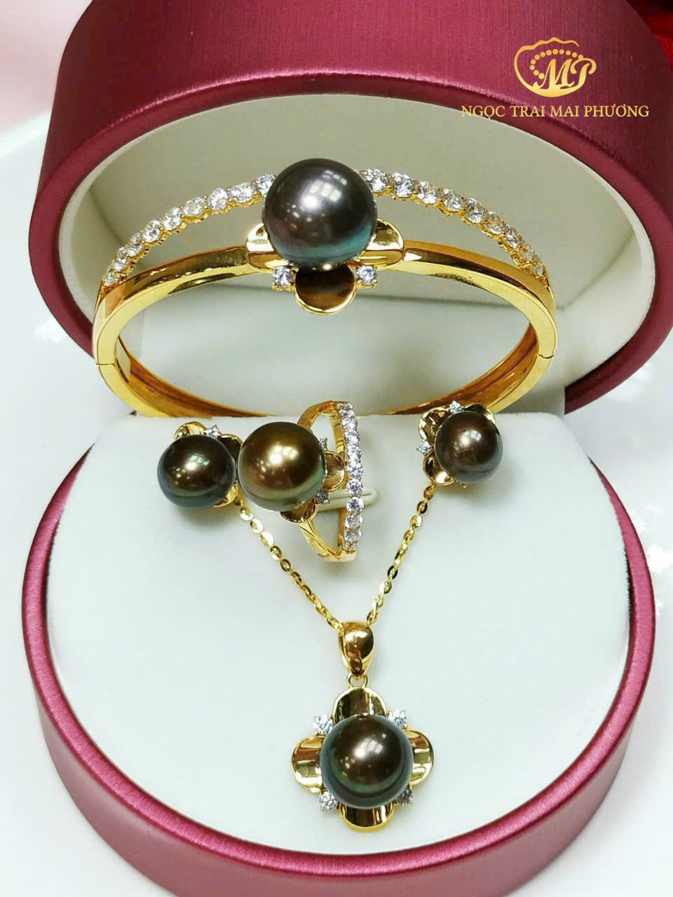 Bộ Trang Sức Ngọc Trai Đen Rêu Sang Trọng