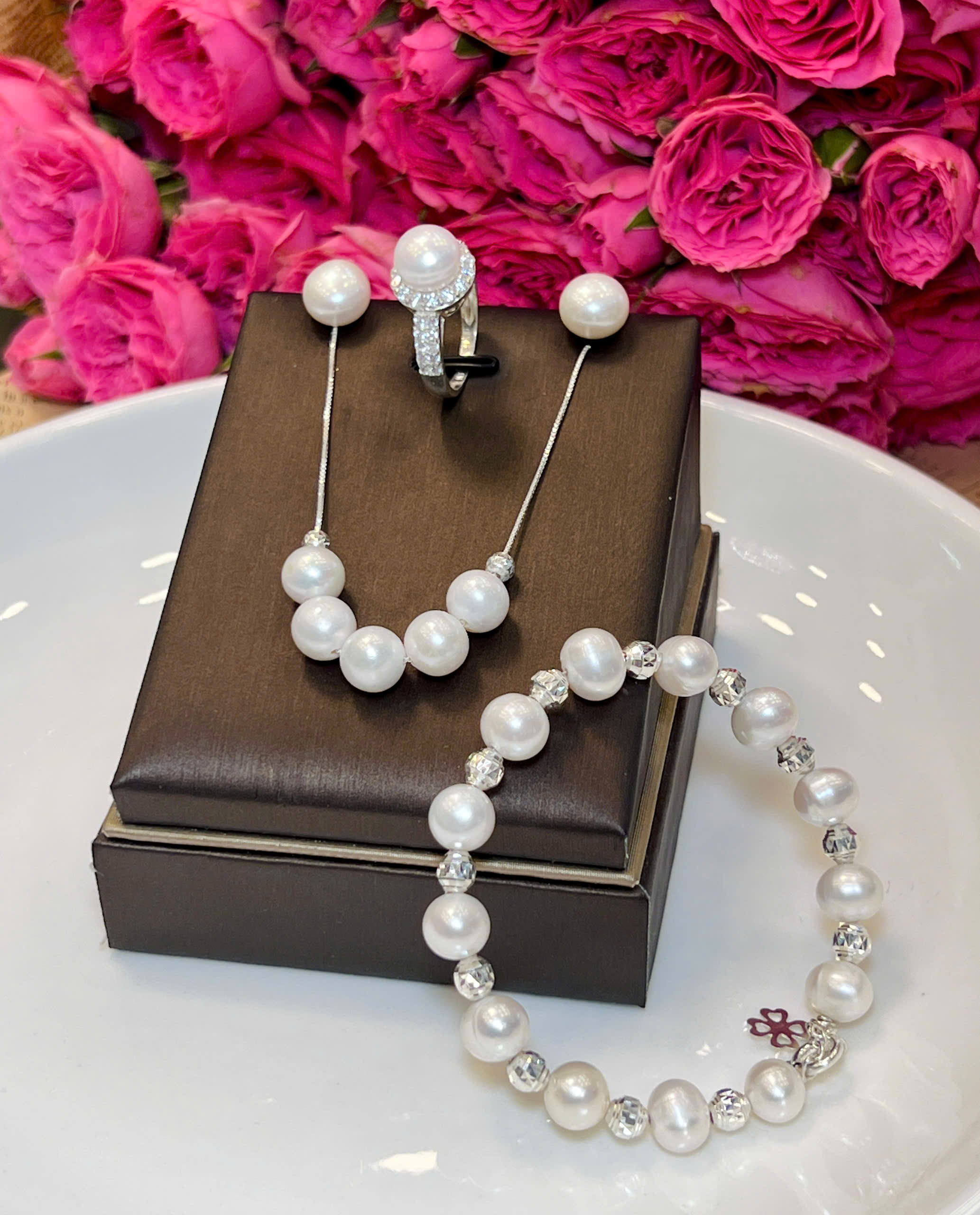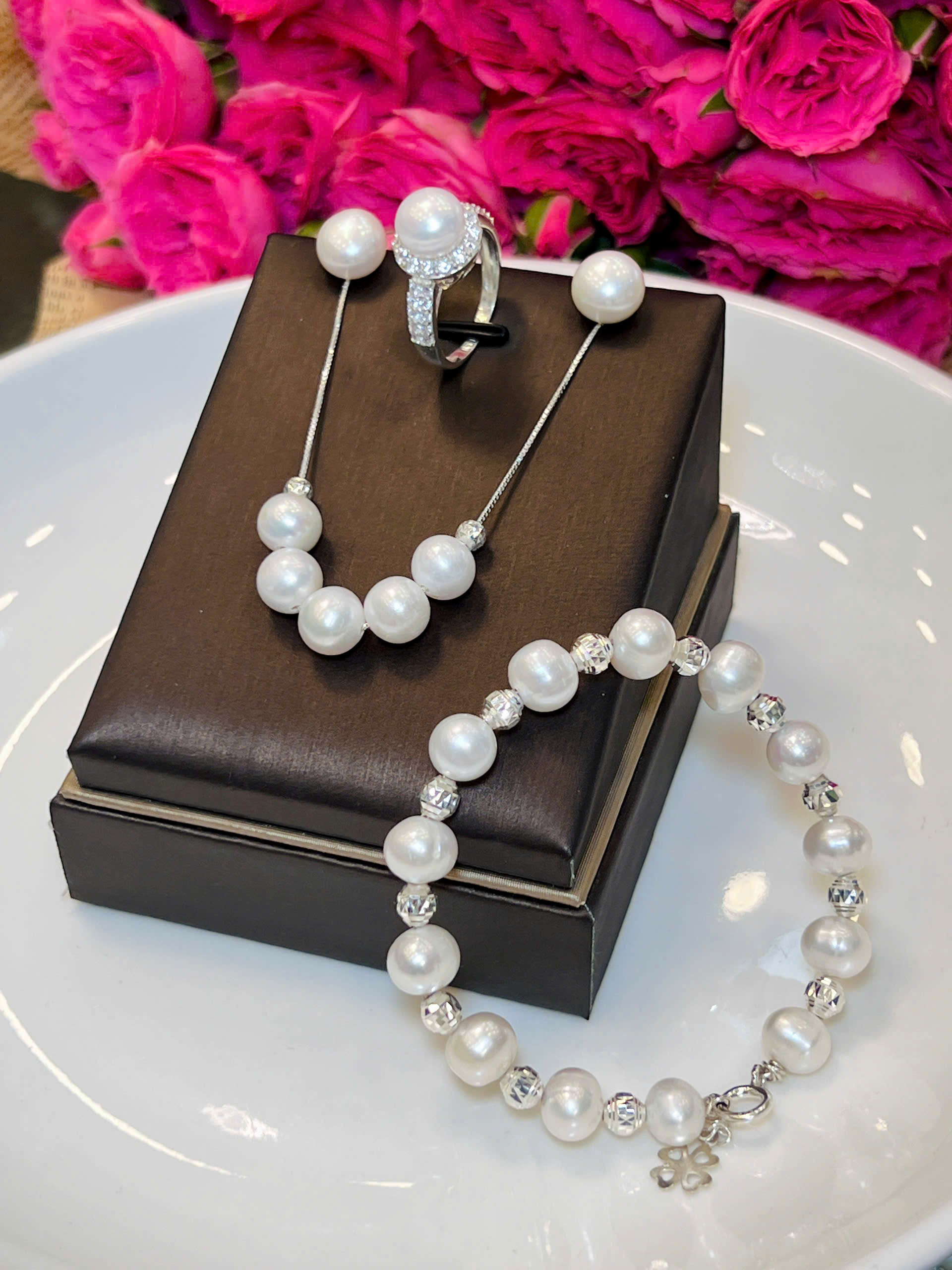 Bộ Trang Sức Ngọc Trai Trắng Chế Tác Bạc