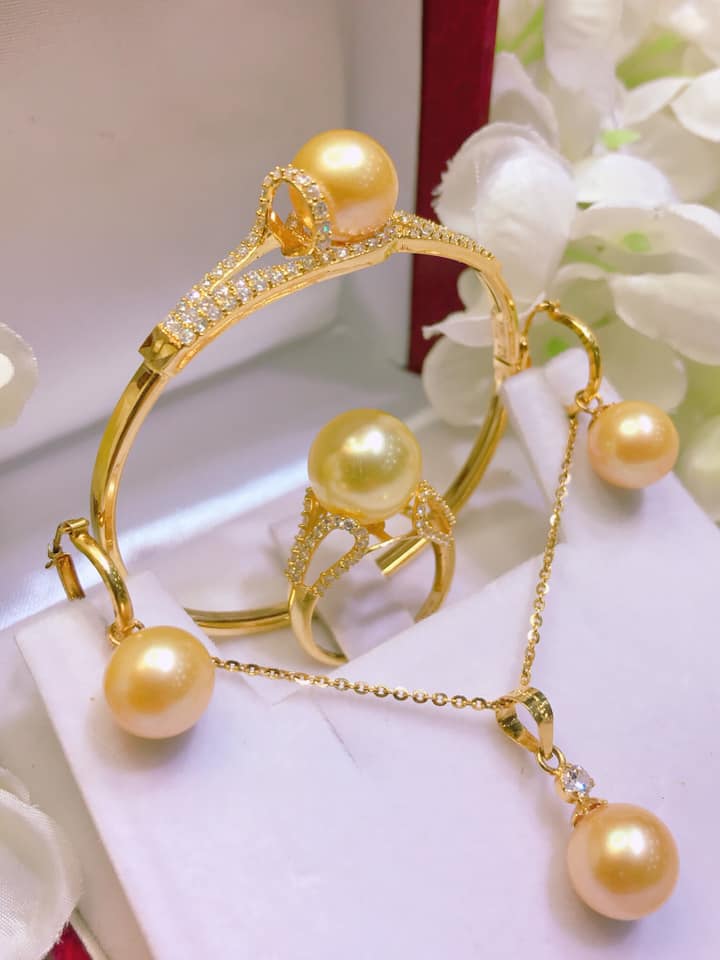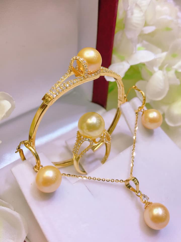 Bộ Trang Sức Ngọc Trai Vàng Kim Sang Trọng
