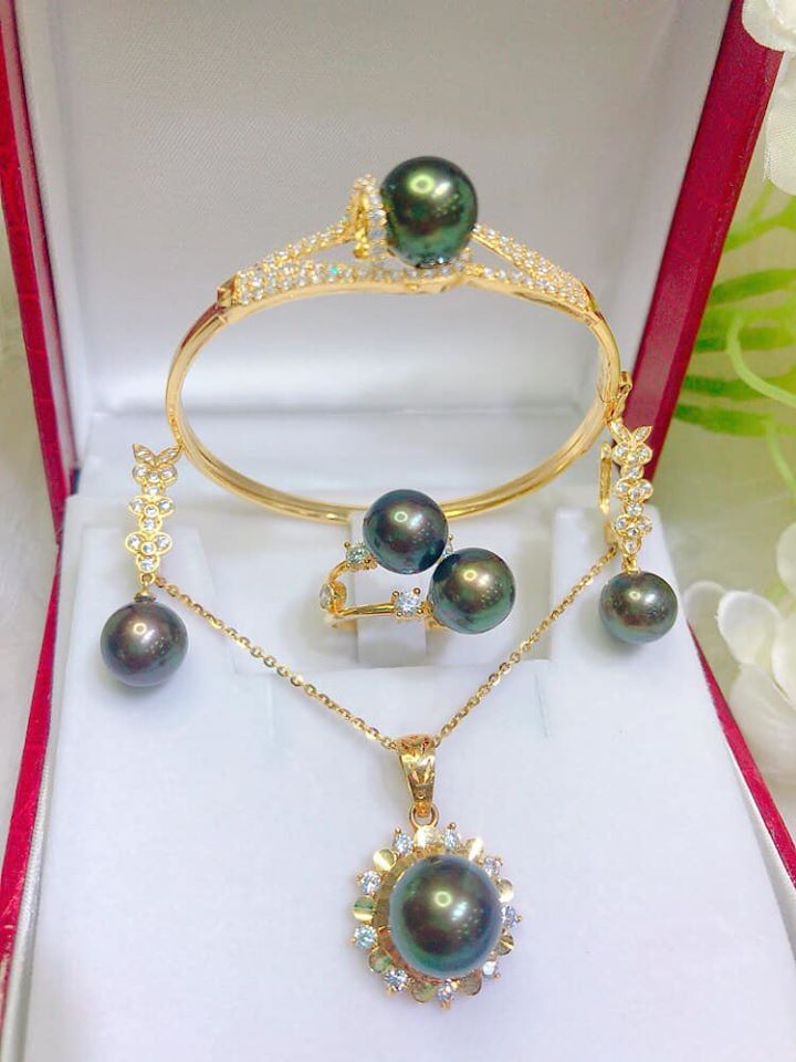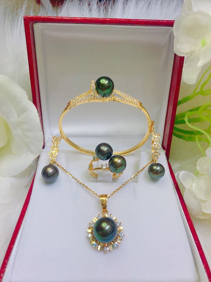 Bộ Trang Sức Ngọc Trai Xanh Rêu Cao Cấp Sang Trọng