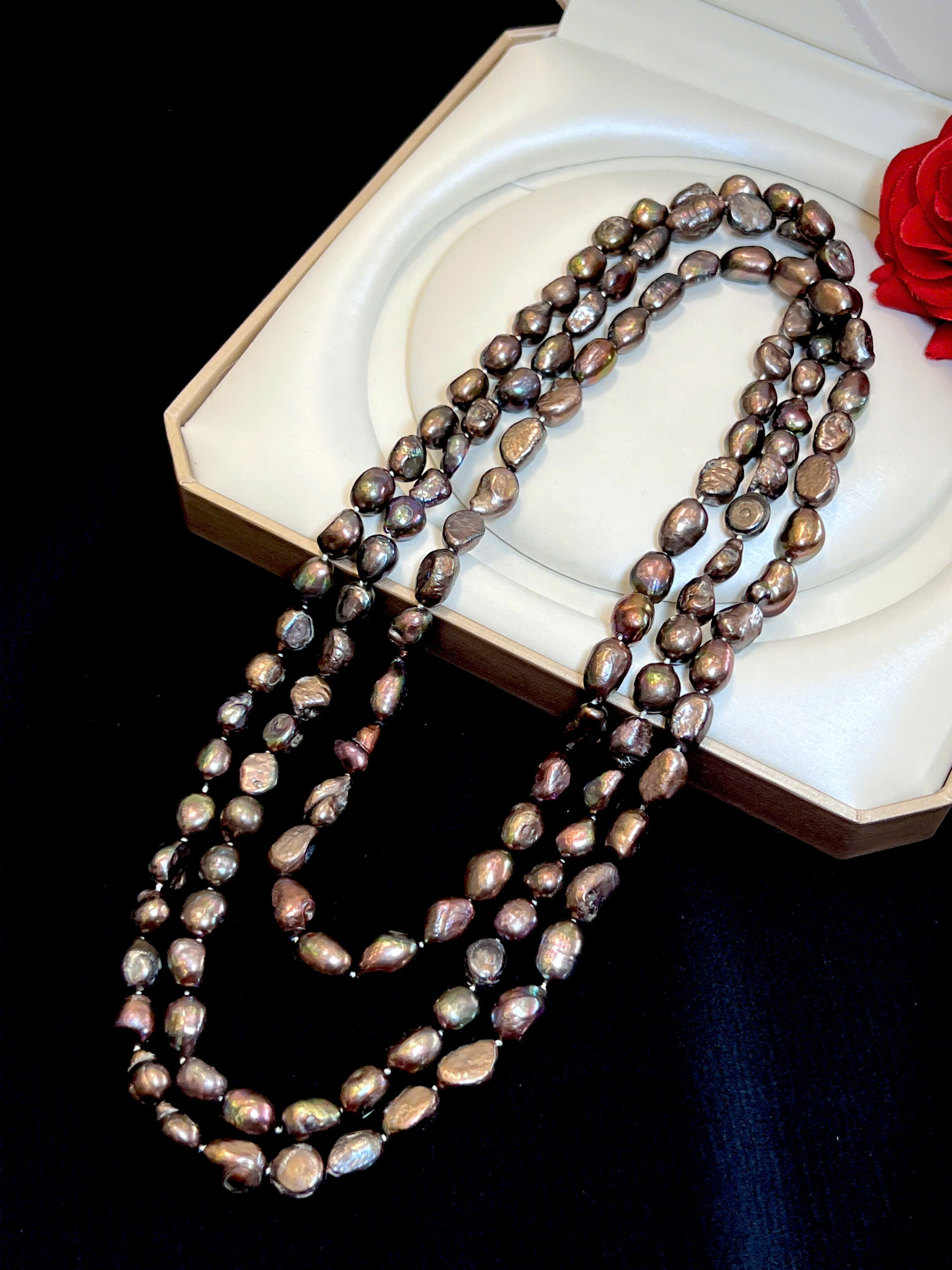 Chuỗi cổ ngọc trai thô tự nhiên sang trọng dáng dài
