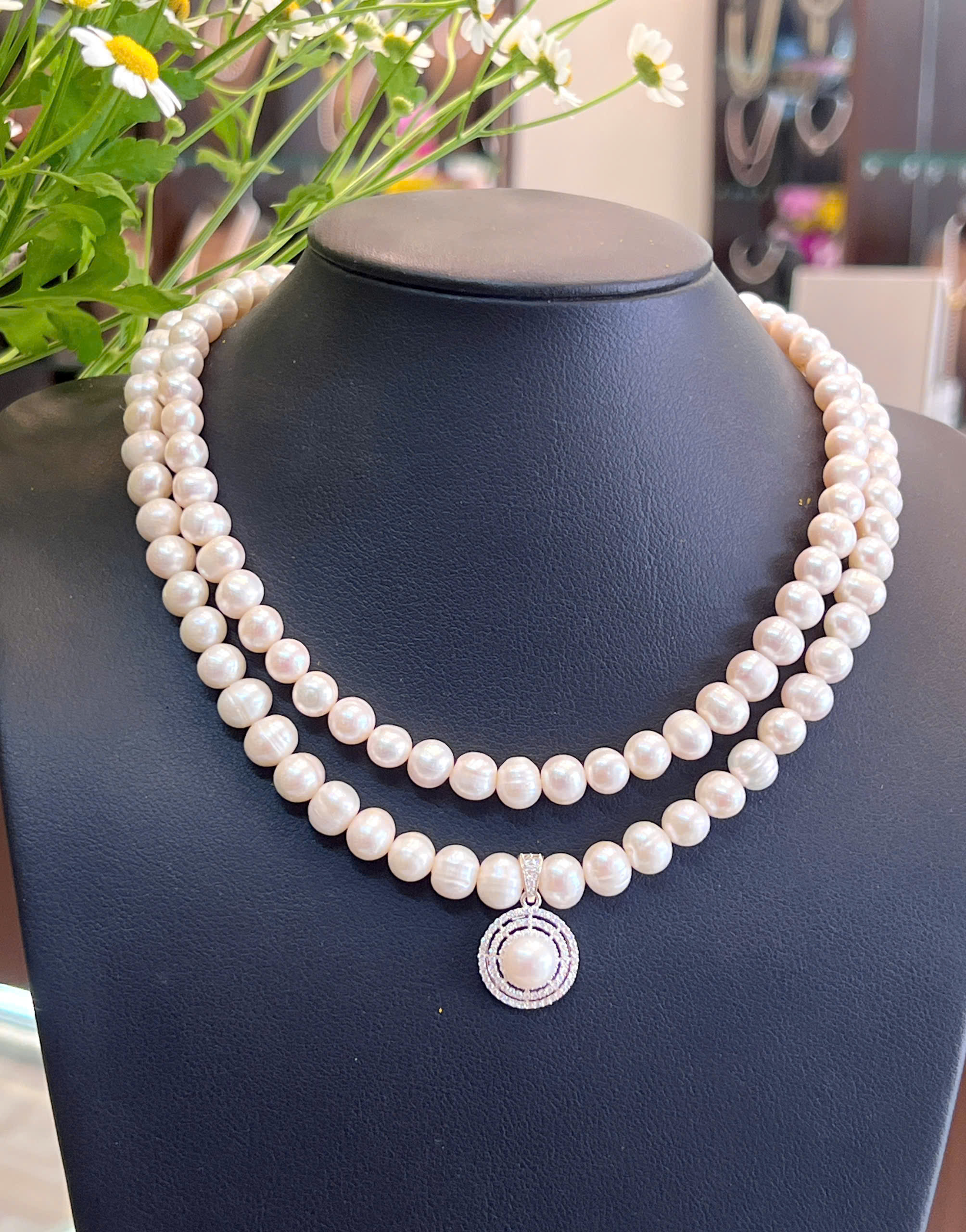 Chuỗi cổ ngọc trai vòng đôi sang trọng