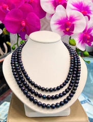 Bộ chuỗi ngọc trai xanh đen duyên dáng ngọc chuôic ovan 7-8li hoa tai và nhẫn bạc