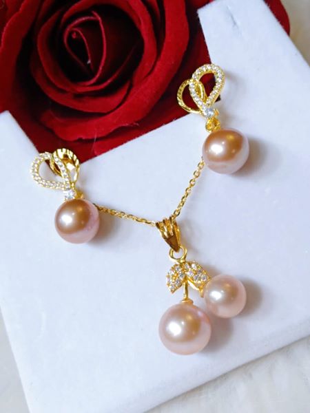 Set Vòng Cổ Ngọc Trai Tím Hồng + Hoa Tai Quý Phái
