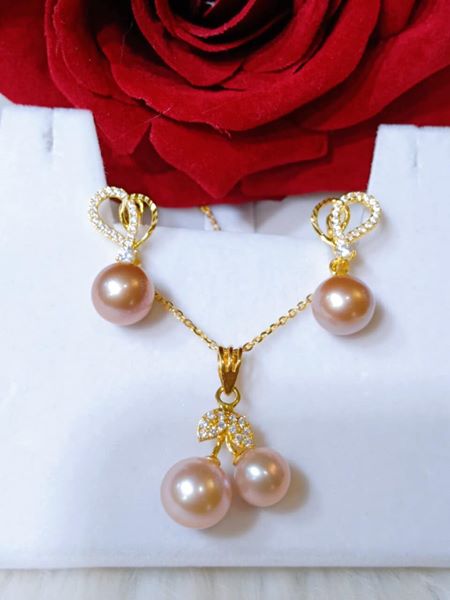 Set Hoa Tai Ngọc Trai Vàng Kim + Mặt Ngọc Sang Trọng