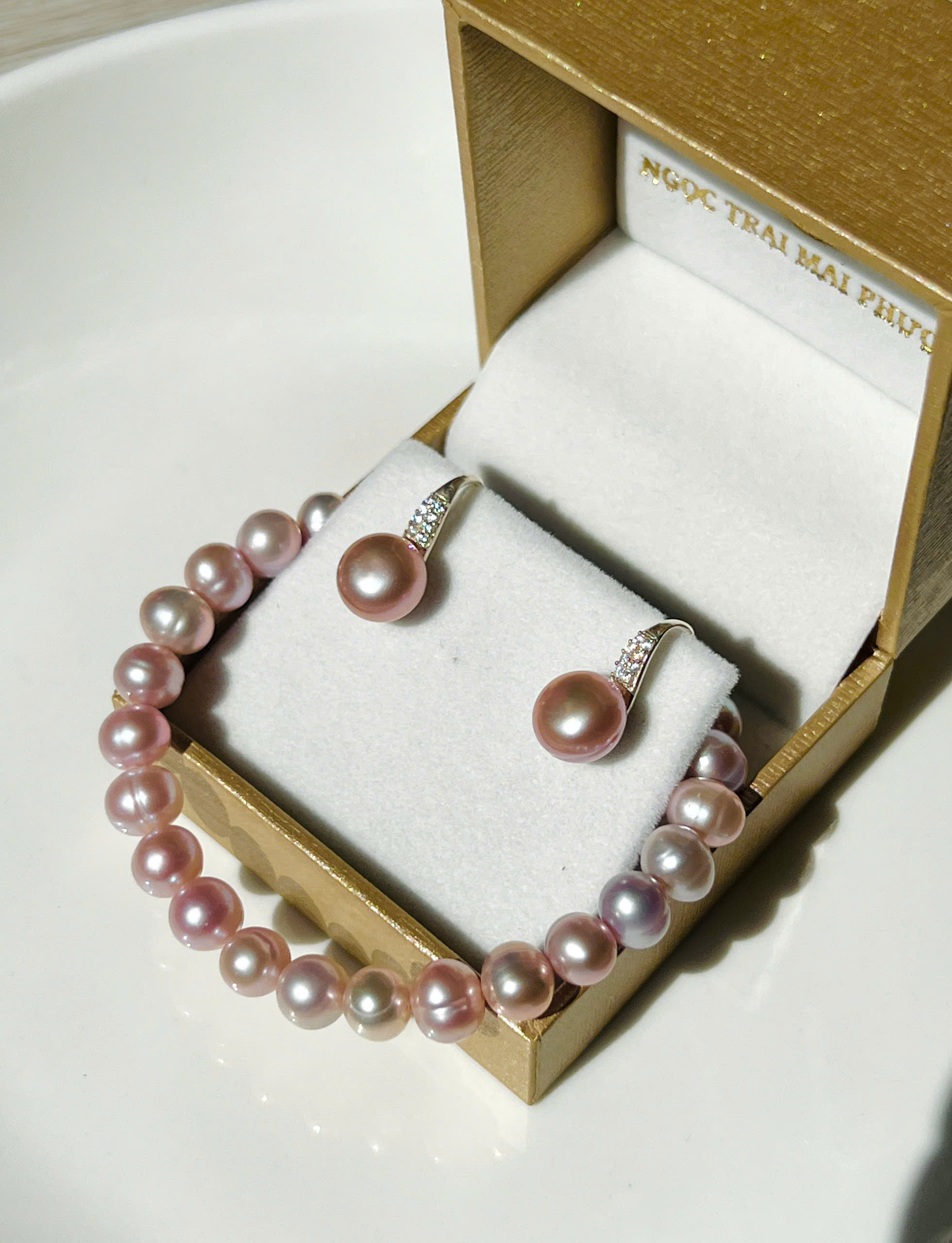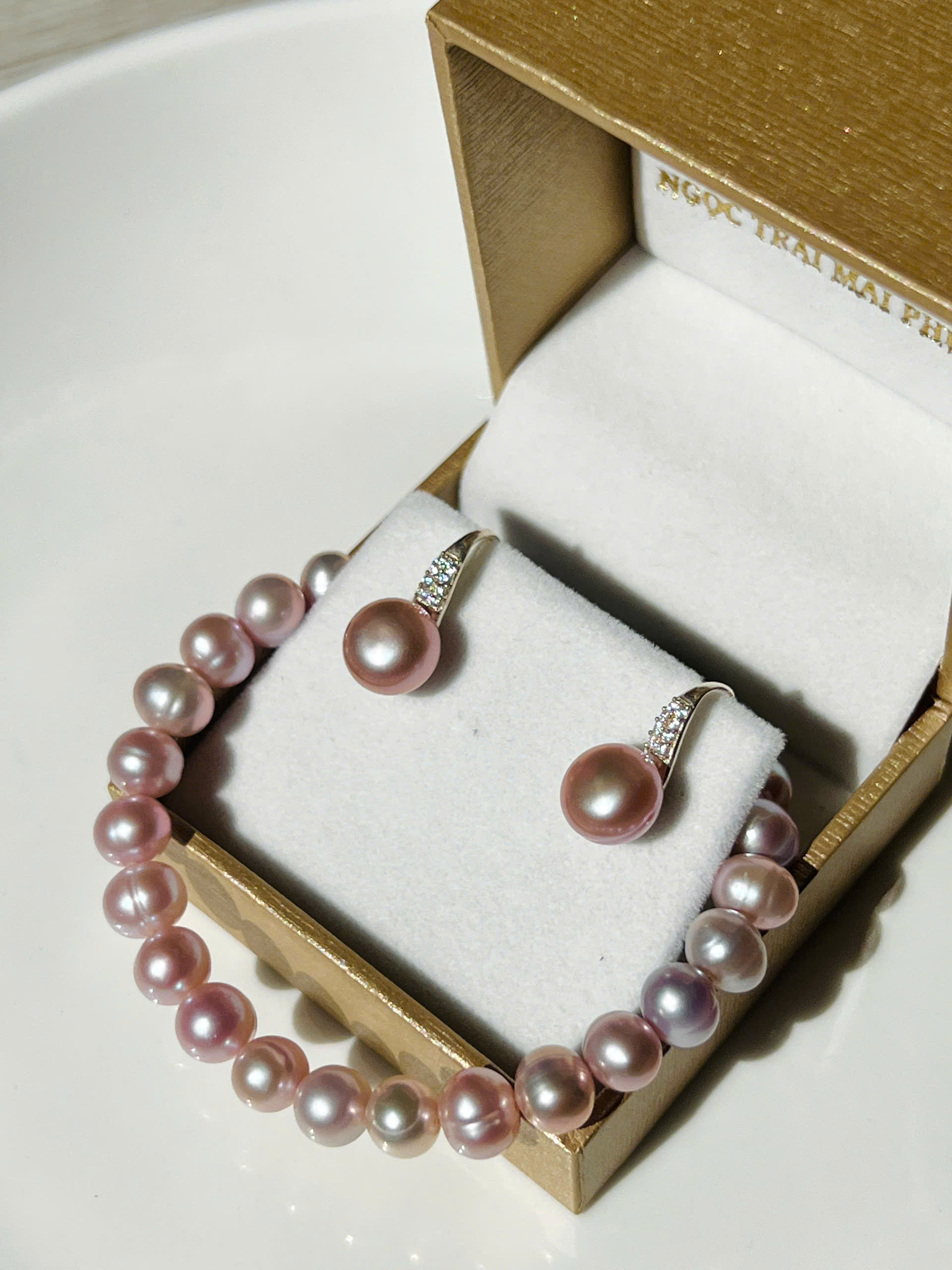 Combo Hoa Tai Ngọc Trai + Vòng Tay Ngọc Trai Duyên Dáng
