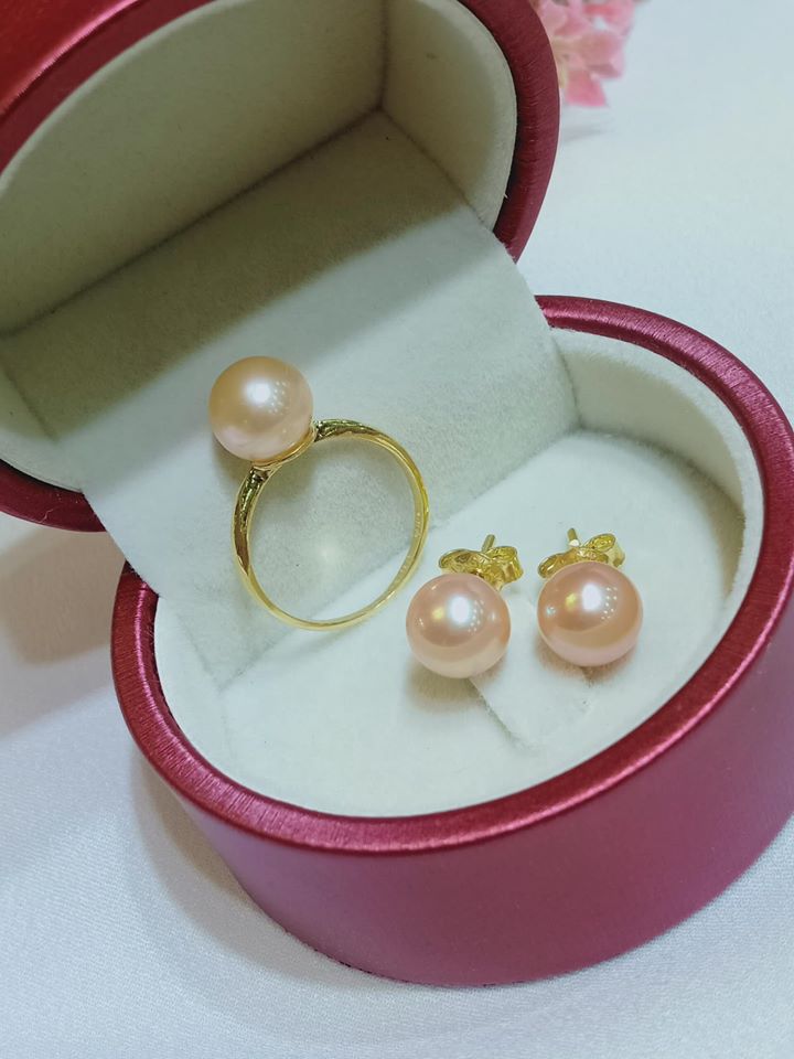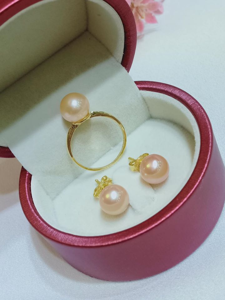 Combo Nhẫn & Hoa Tai Ngọc Trai Nụ Hồng Duyên Dáng