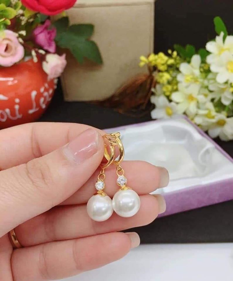 Hoa Tai Ngọc Trai Khoen Tròn Nữ Tính
