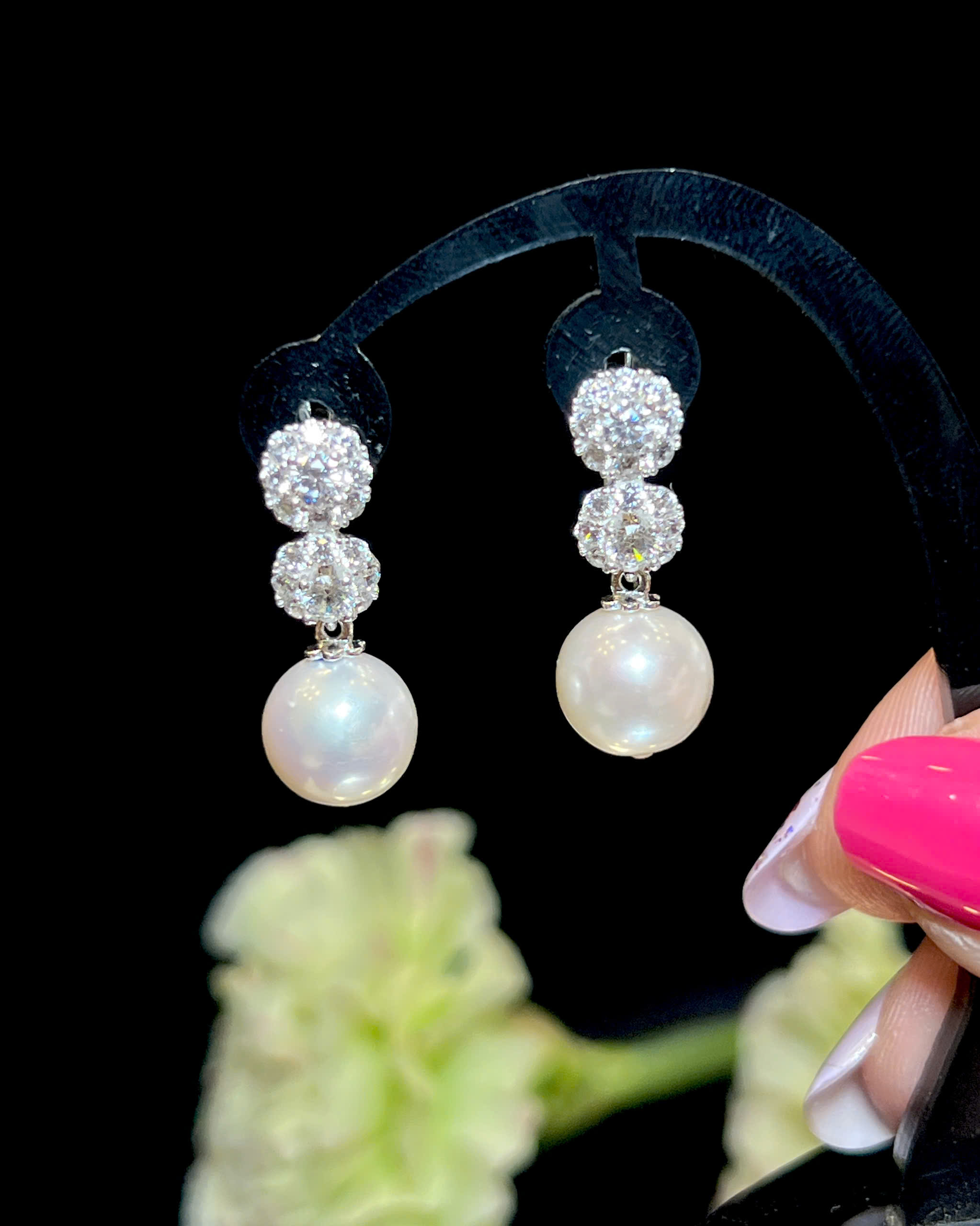 Hoa Tai Ngọc Trai Trắng Chế Tác Bạc