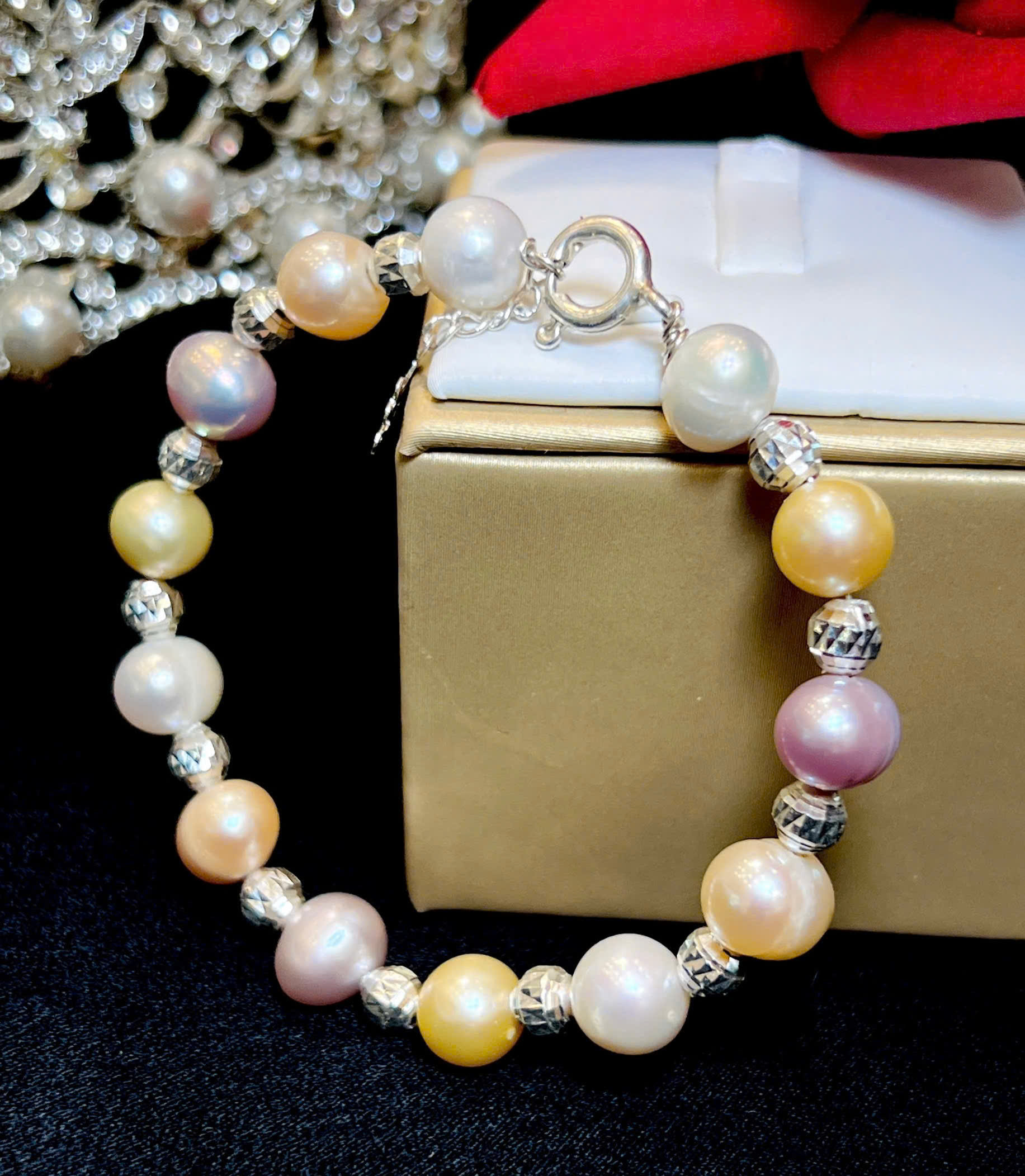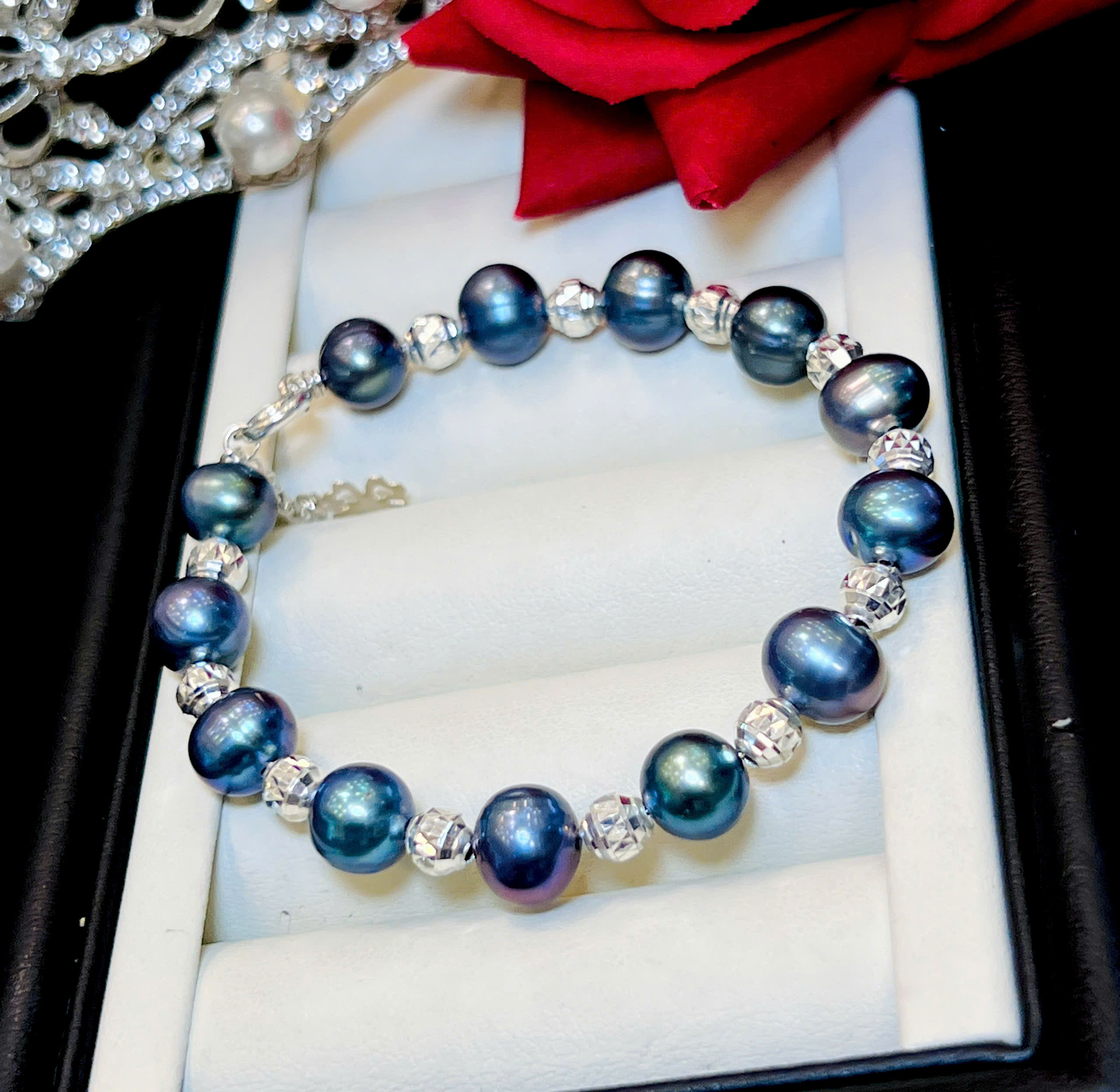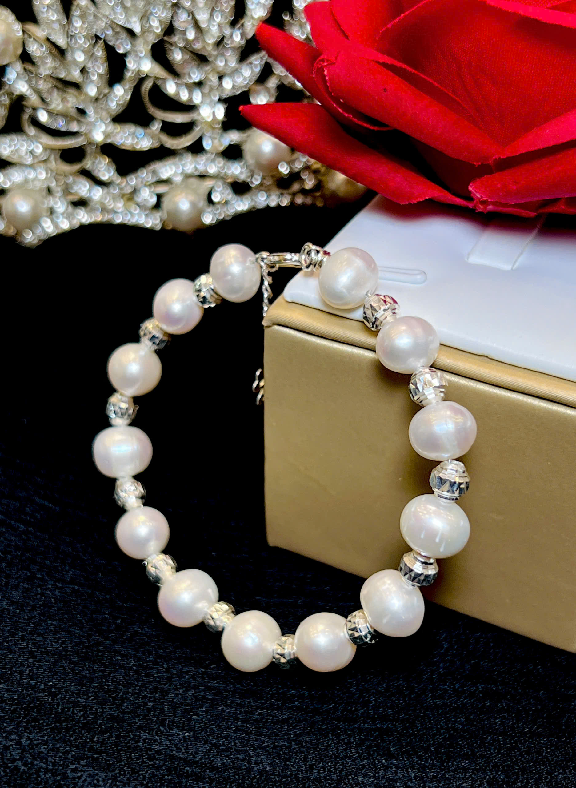 Lắc Tay Ngọc Trai Phối Bi Bạc Duyên Dáng