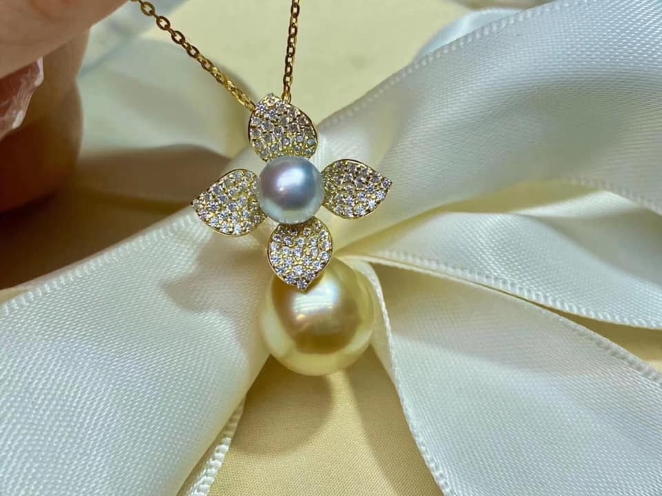 Viên ngọc trai cao cấp xám khói và vàng kim, vàng 18k 610