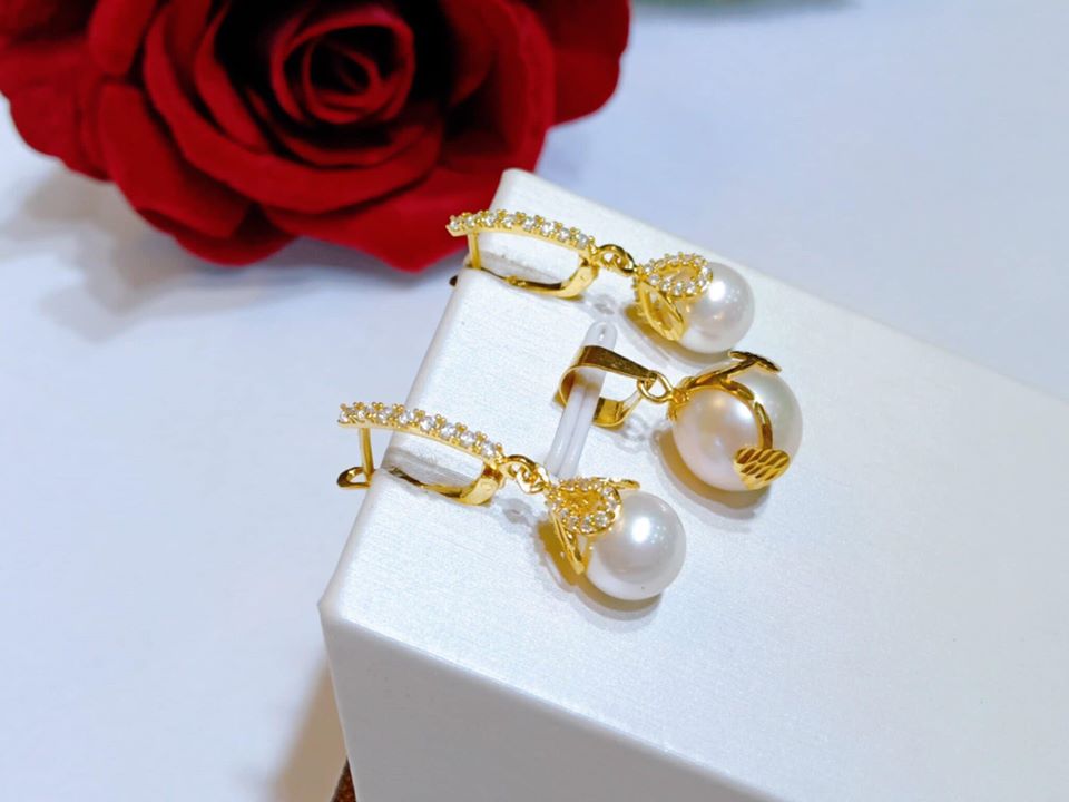Set Hoa Tai Ngọc Trai Vàng Kim + Mặt Ngọc Sang Trọng