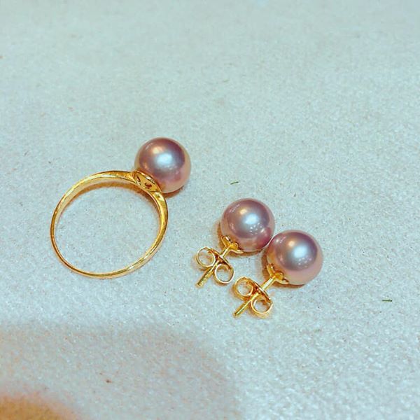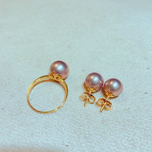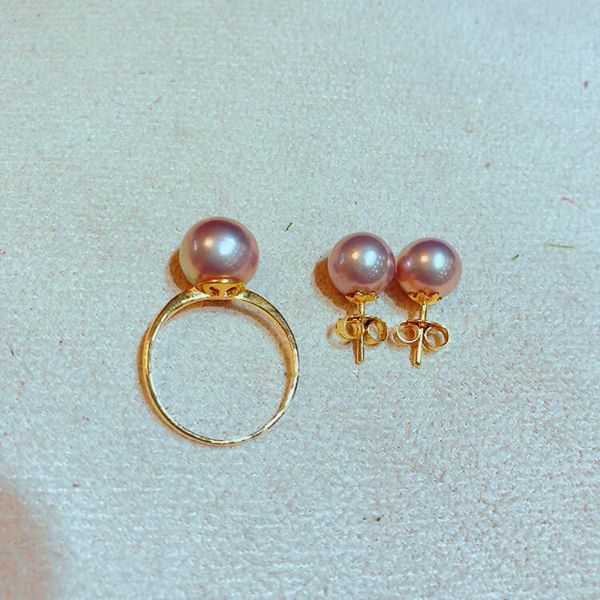 Set Nhẫn + Hoa Tai Nụ Ngọc Trai Tím Hồng Duyên Dáng