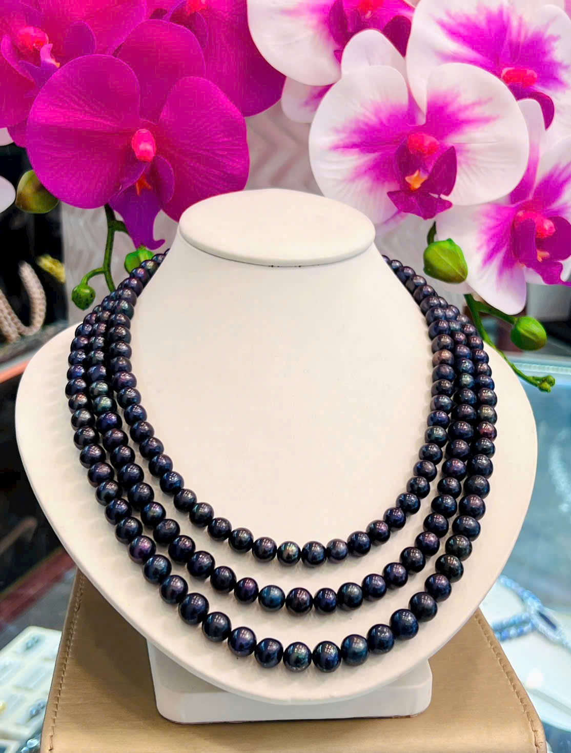 VÒNG CỔ NGỌC TRAI XANH ĐEN ĐẬM