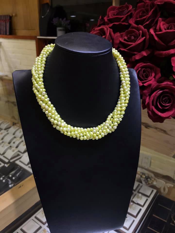 Vòng Cổ Ngọc Trai Xoắn Xanh Rêu Quý Phái