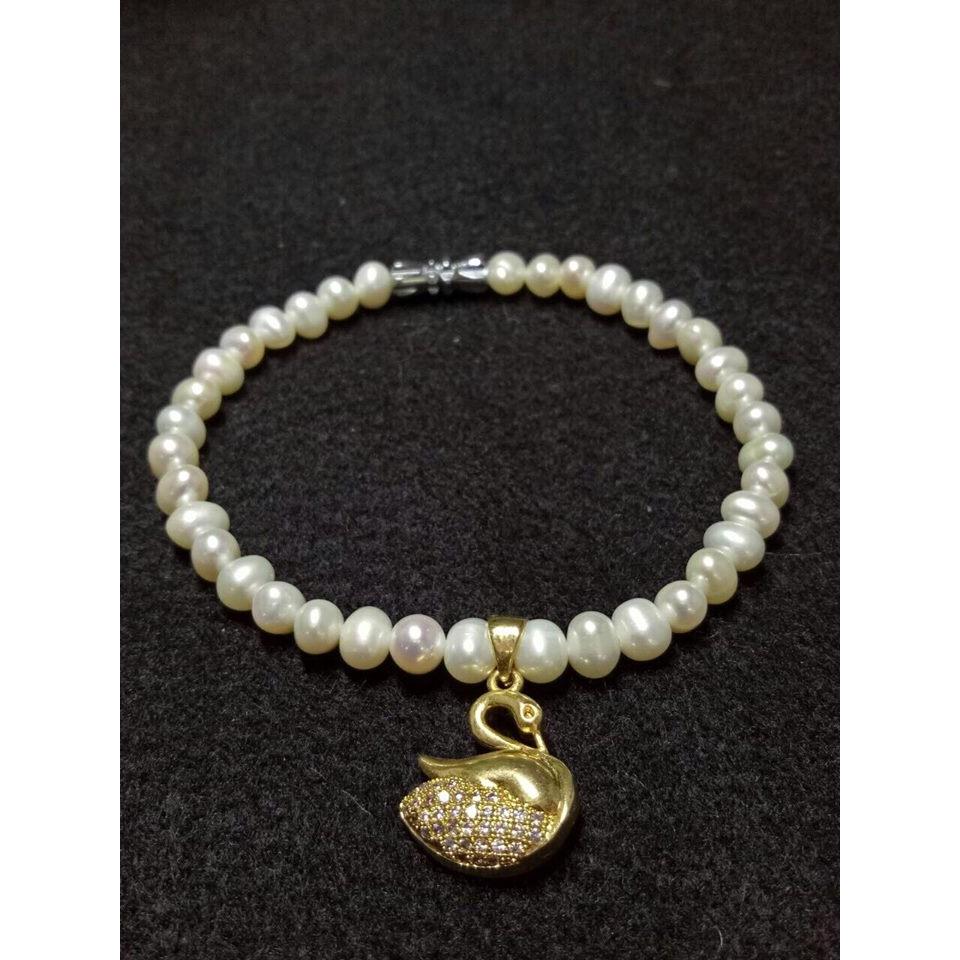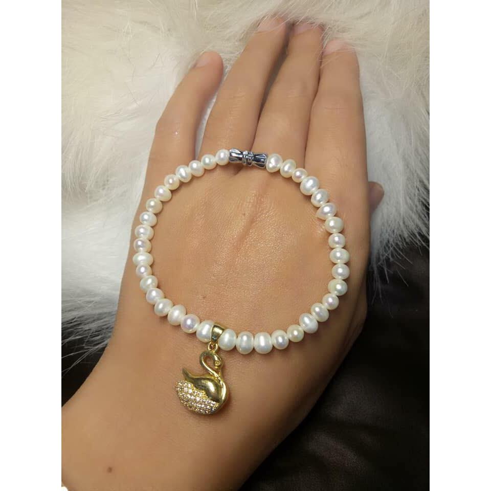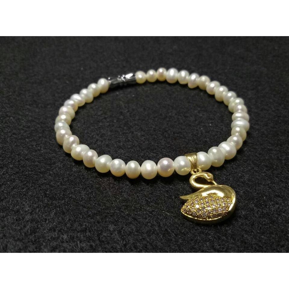 Được thiết kế giản đơn từ những viên ngọc 3mm - 4mm nhỏ xinh và kết hợp thêm mặt dây hình Thiên Nga mạ vàng 18k giúp góp phần tạo nên nét tươi mới cho sản phẩm.