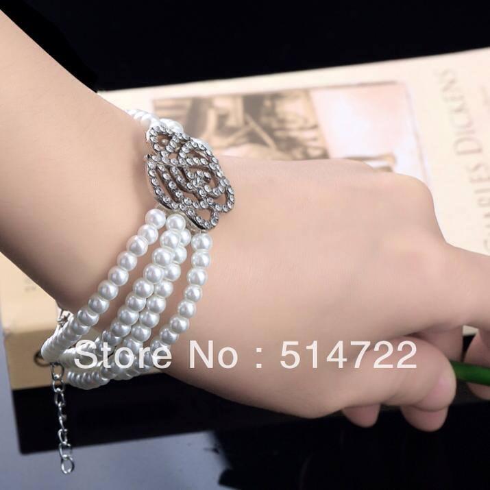 Mã sản phẩm: VT61668 Vòng tay ngọc trai trắng 3 vòng mặt hoa hồng Đường kính ngọc trai 6-7mm SANG TRỌNG, QUÝ PHÁI, ĐẲNG CẤP